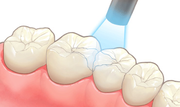 どんな小さな虫歯も逃さず患者様の口腔内を健康に保つため、レーザーを利用した先進の虫歯診断装置を採用しています。歯にレーザーを当てその反射を解析し、数値と音色に変換して虫歯を発見します。従来の方法(視診やX線など)だけでは見つけられなかった小さな虫歯も発見できるので安心です。