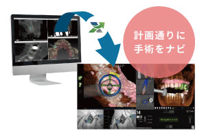 歯科用CTスキャナーで撮影した3次元画像データを基に、インプラントの治療計画シミュレーションから埋め込み手術までのインプラント治療の全行程を、より最適にサポートするインプラント手術用3Dシミュレーションシステム「ノーベルガイド」を採用。
